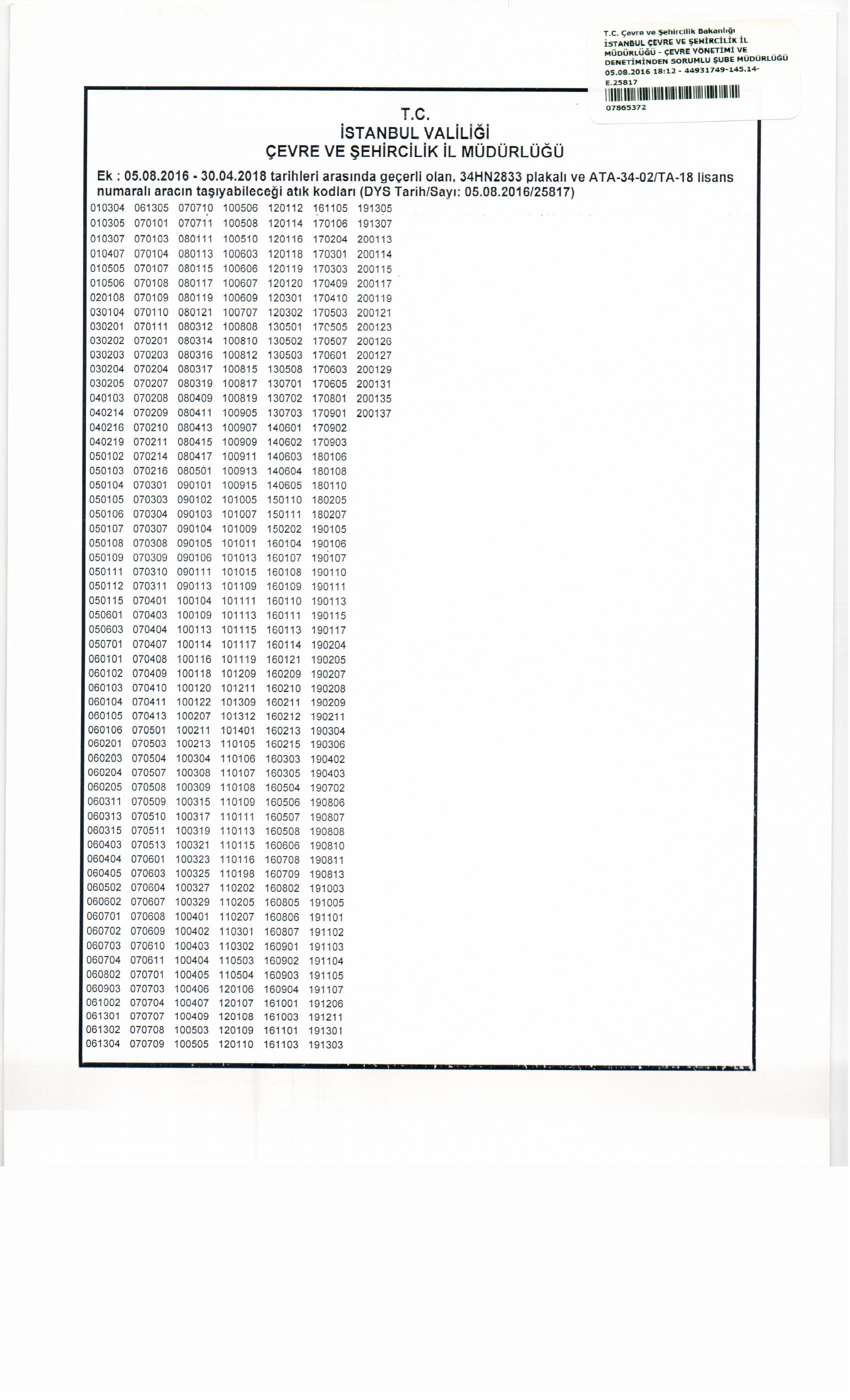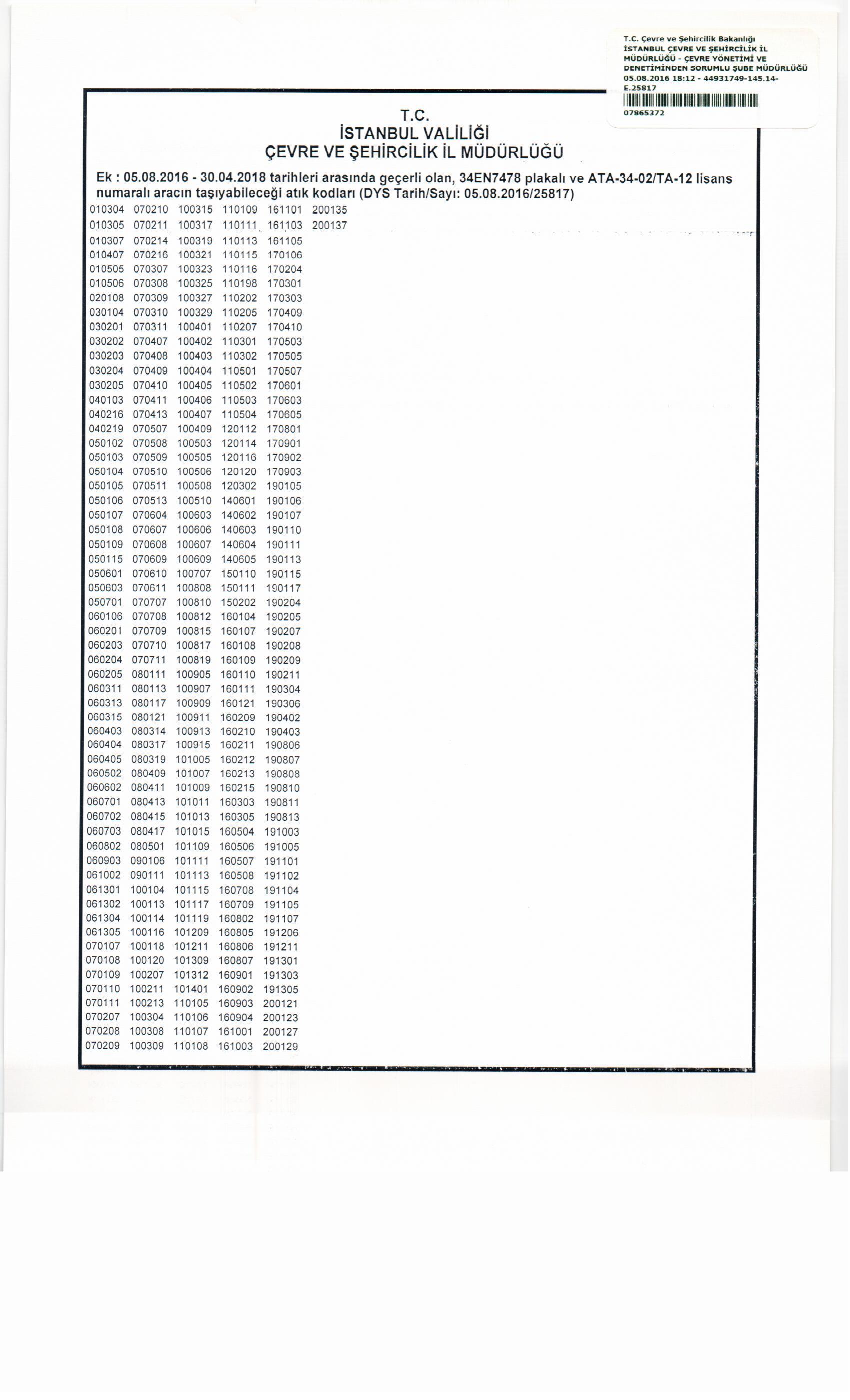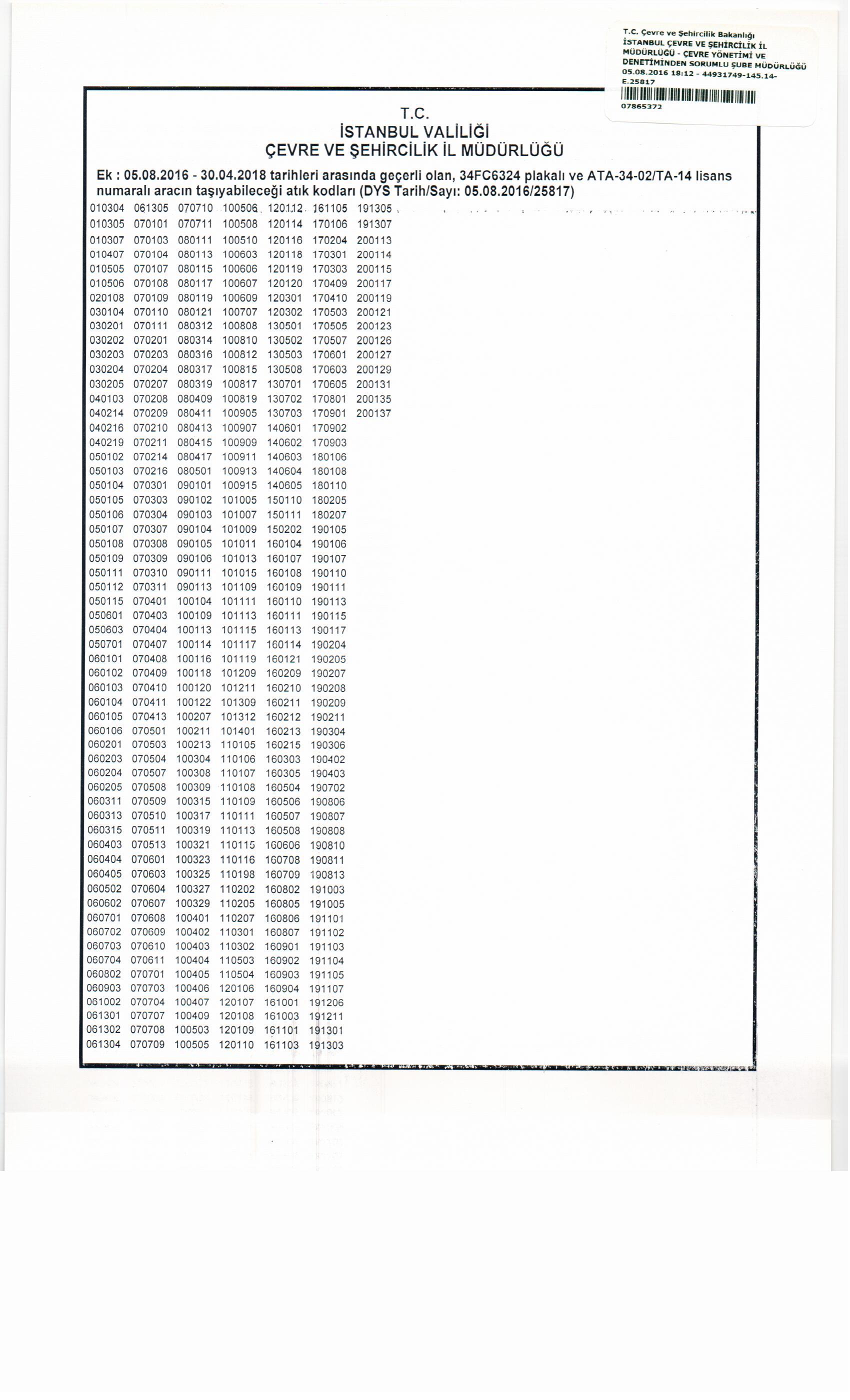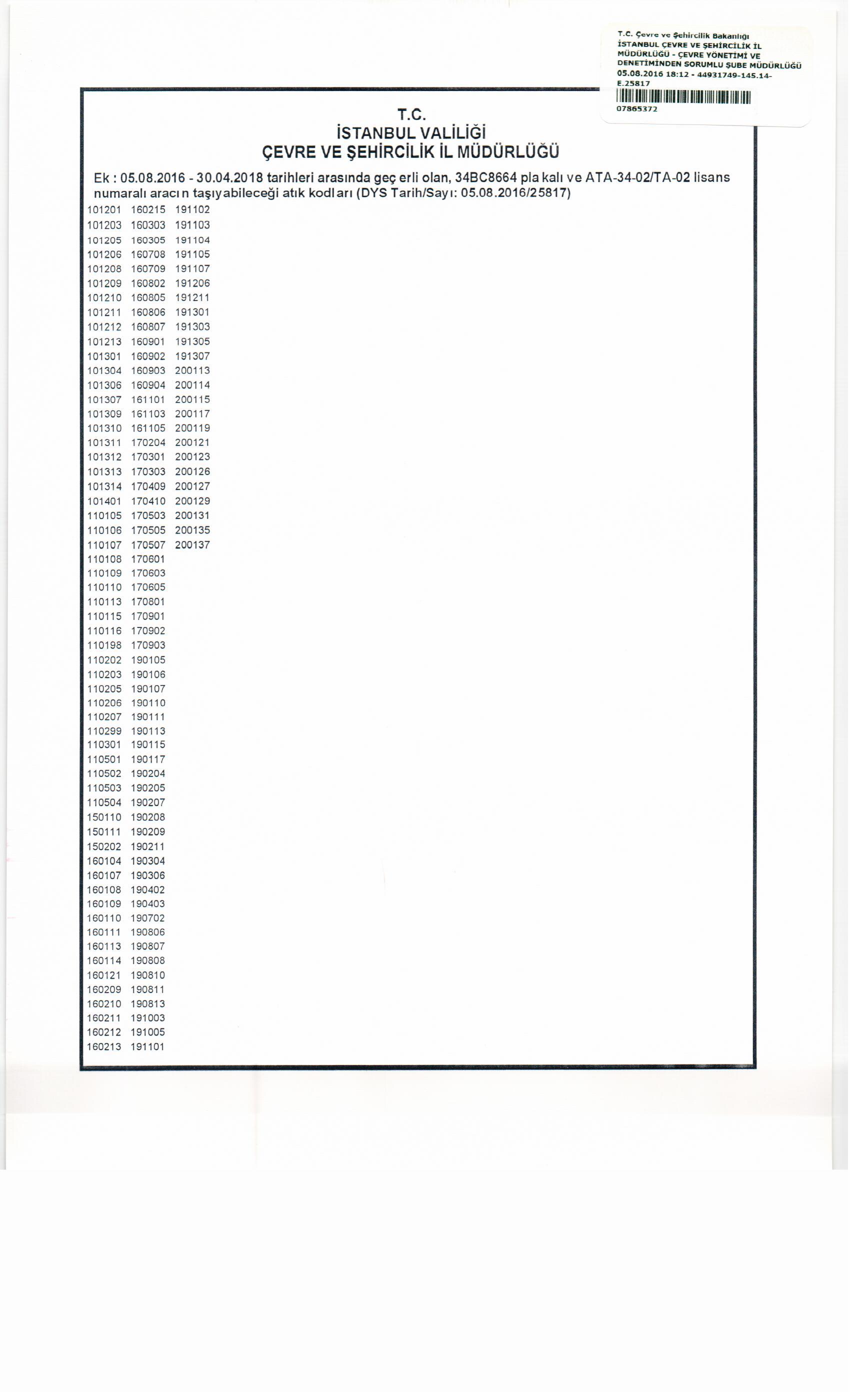 Araç atık kodlarını görüntülemek için tıklayınız.