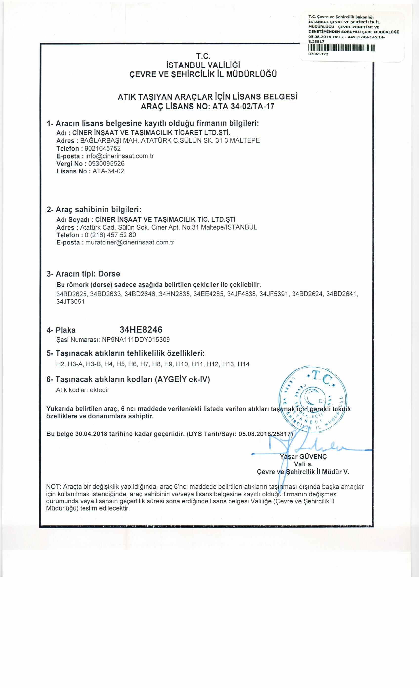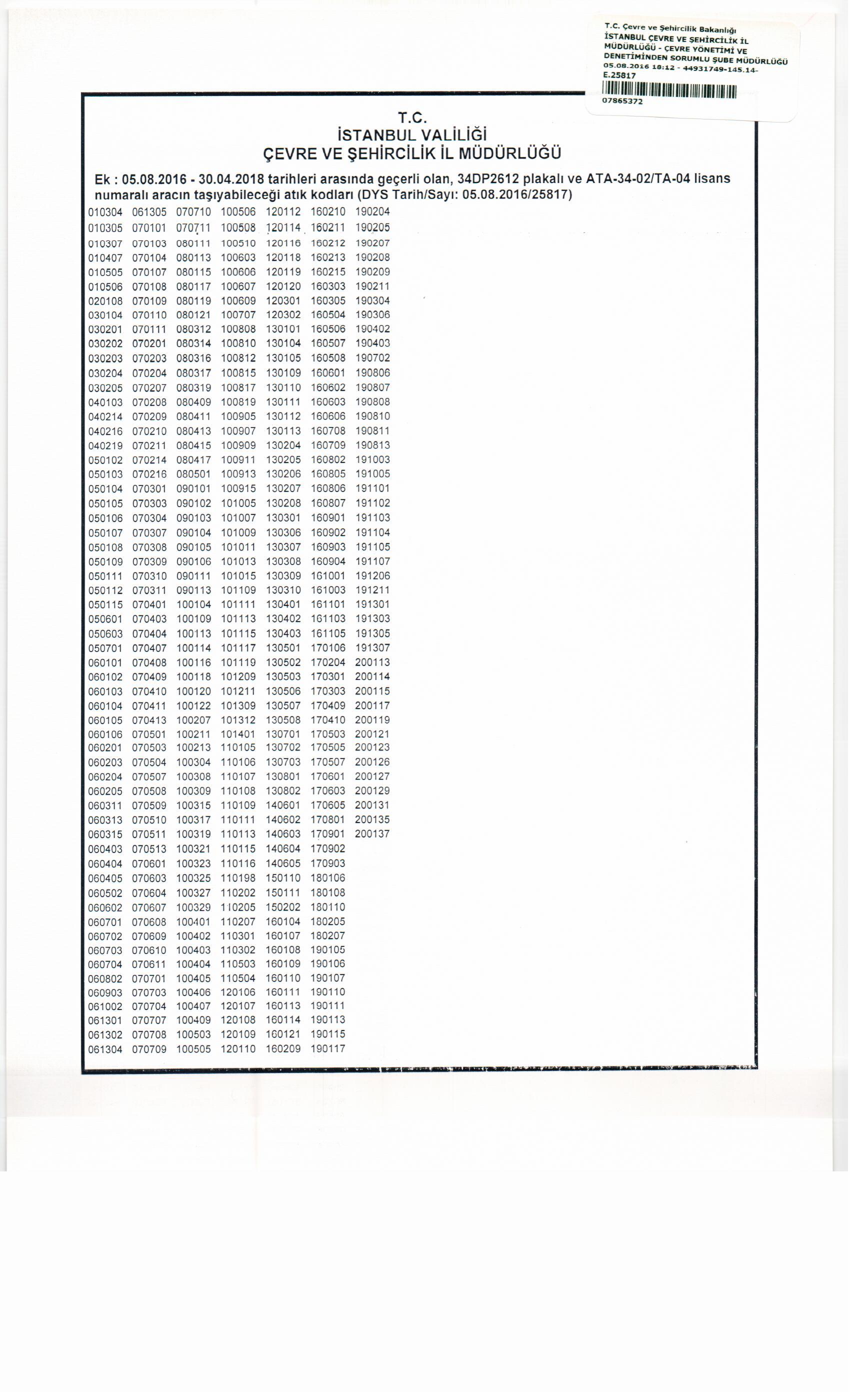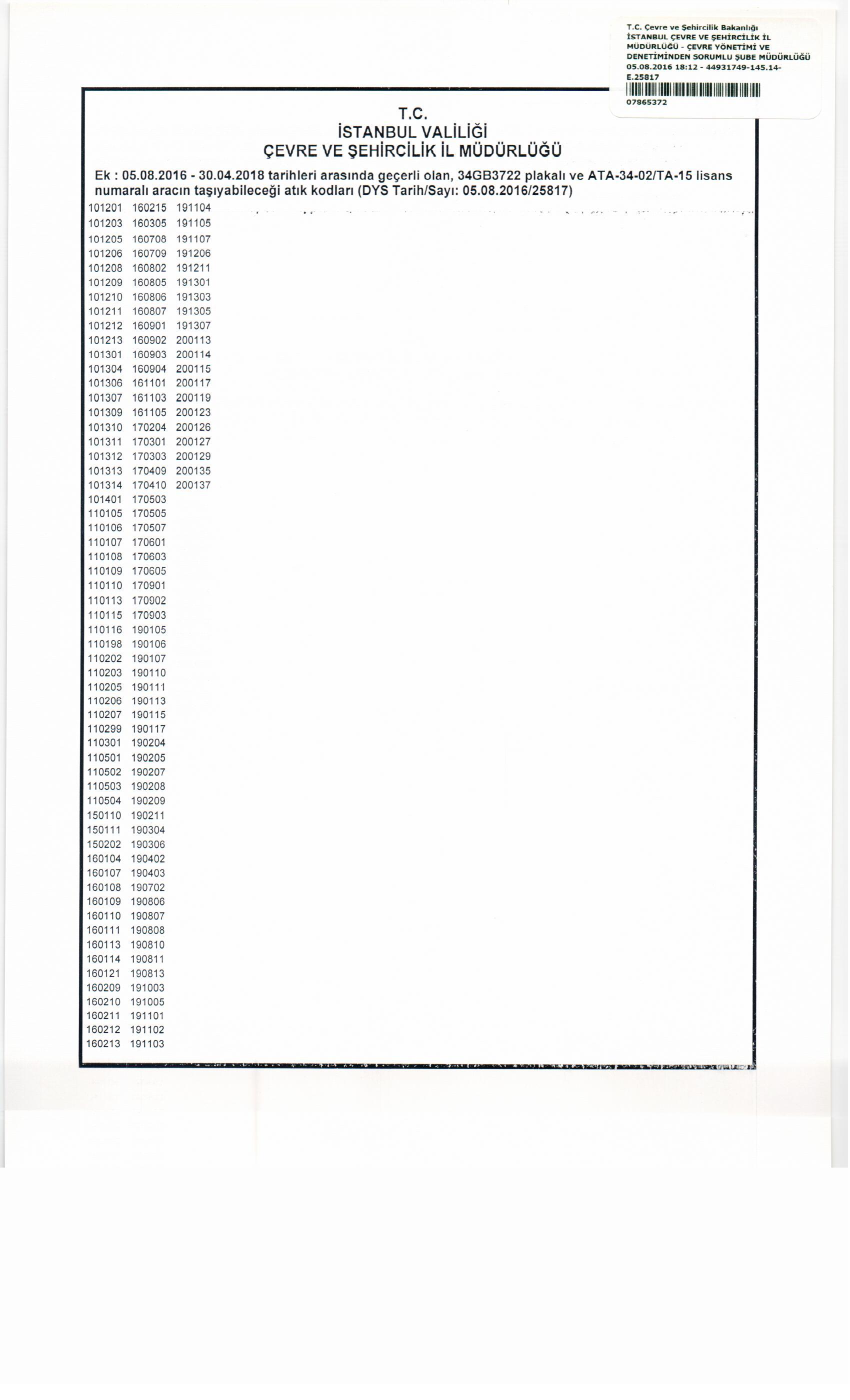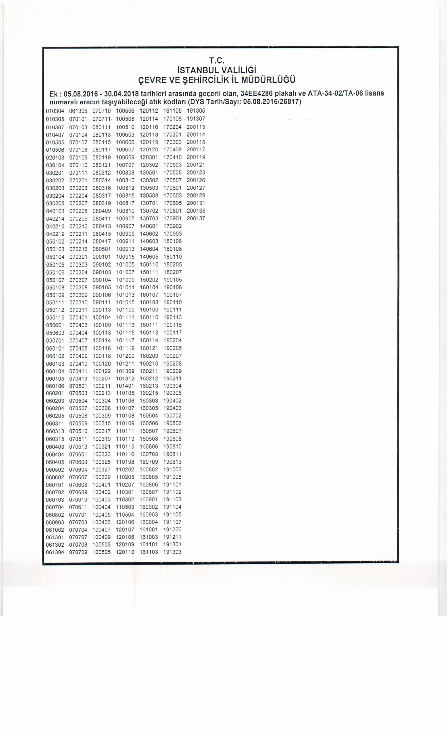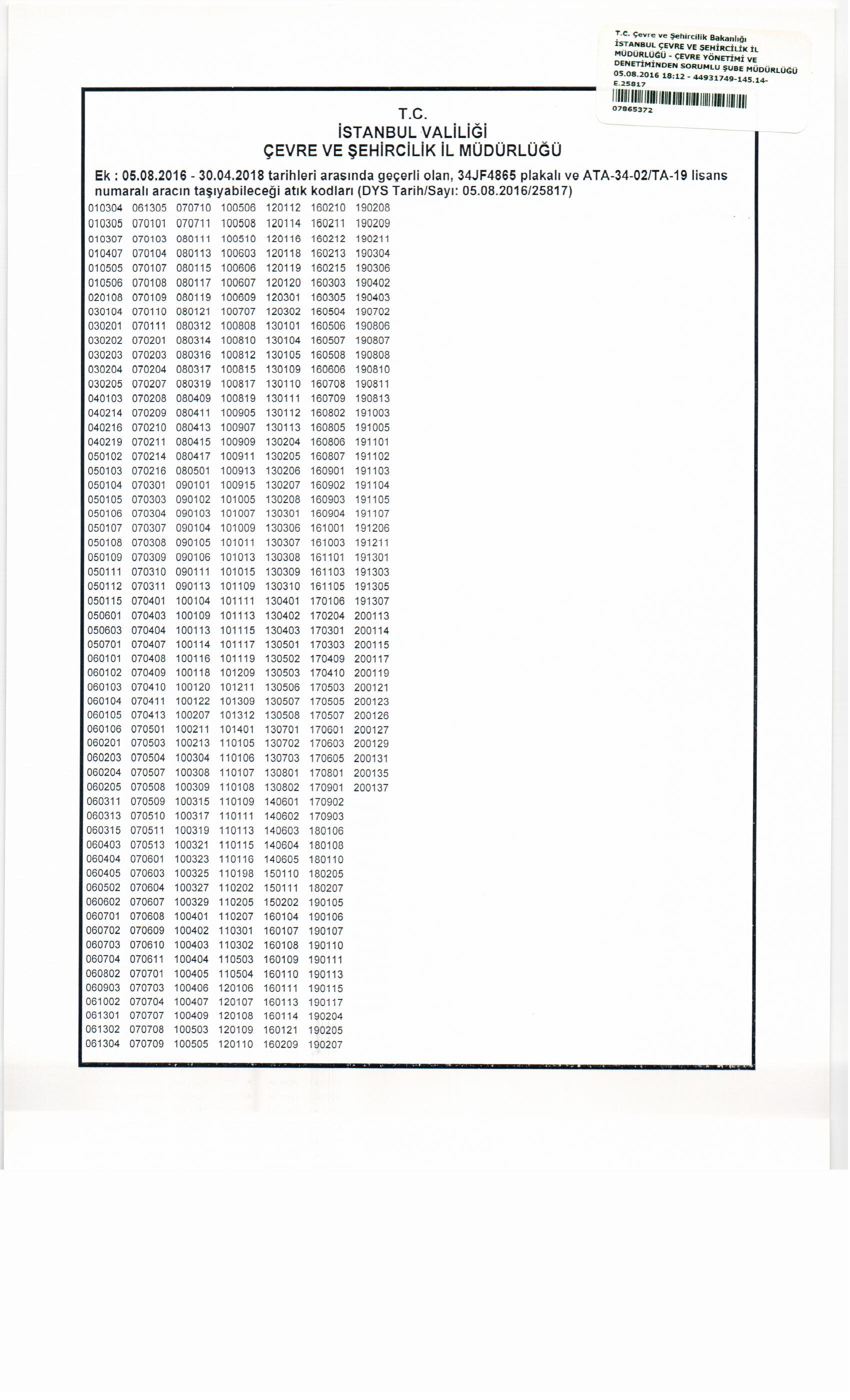 Araç atık kodlarını görüntülemek için tıklayınız.